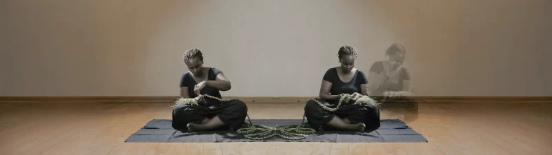 The Open Weave I (2024) is a two-channel video installation that explores intergenerational memory, ritual, and the embodied act of weaving as a means of sustaining relationships across time. It references Letters to…, a video I made in 2016, which was paired with a two-part letter by feminist activist and writer Demere Kitunga, who is also my mother. In her letter, my mother recalls the silent intergenerational transmissions that guided her in childhood and makes a plea for speech: “Talking to you is my attempt to find my tongue…” She returns three times to the image of a single marigold growing on the burial site of her infant sibling. Though ephemeral, the marigold flower remains a vivid memory—it marks the site of an enduring family wound and becomes a metonym for speaking the unspeakable, for holding grief within the fragile yet persistent form of a bloom.